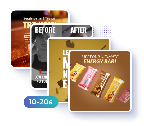 Short-form video content, usually 3-10 seconds long. These clips focus on one or two frames and highlight a specific message or product feature.